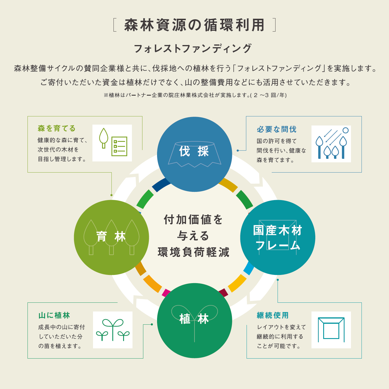 フジヤは「木になるプロジェクト」として、森林資源の循環利用によってカーボンニュートラルを目指す取り組みを行っております。今回の展示会ブースでは、ユニット部材に「フジヤサステナブルプロダクツ 国産木材フレーム」で構成したブース展開でフジヤの取り組みを御紹介します。