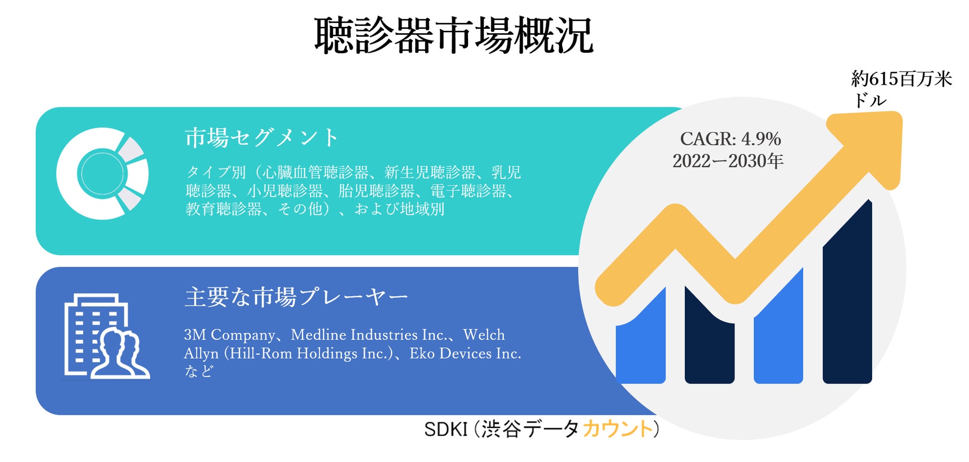 SDKI Inc.は、世界の聴診器市場の新レポートを2022年01月13日に発刊しました。この調査には、聴診器市場の成長に必要な統計的および分析的アプローチが含まれています。レポートで提供される主要な産業の洞察は、市場の既存のシナリオに関する読者に市場の概要についてのより良いアイデアを提供します。さらに、レポートには、市場の成長に関連する現在および将来の市場動向に関する詳細な議論が含まれています。