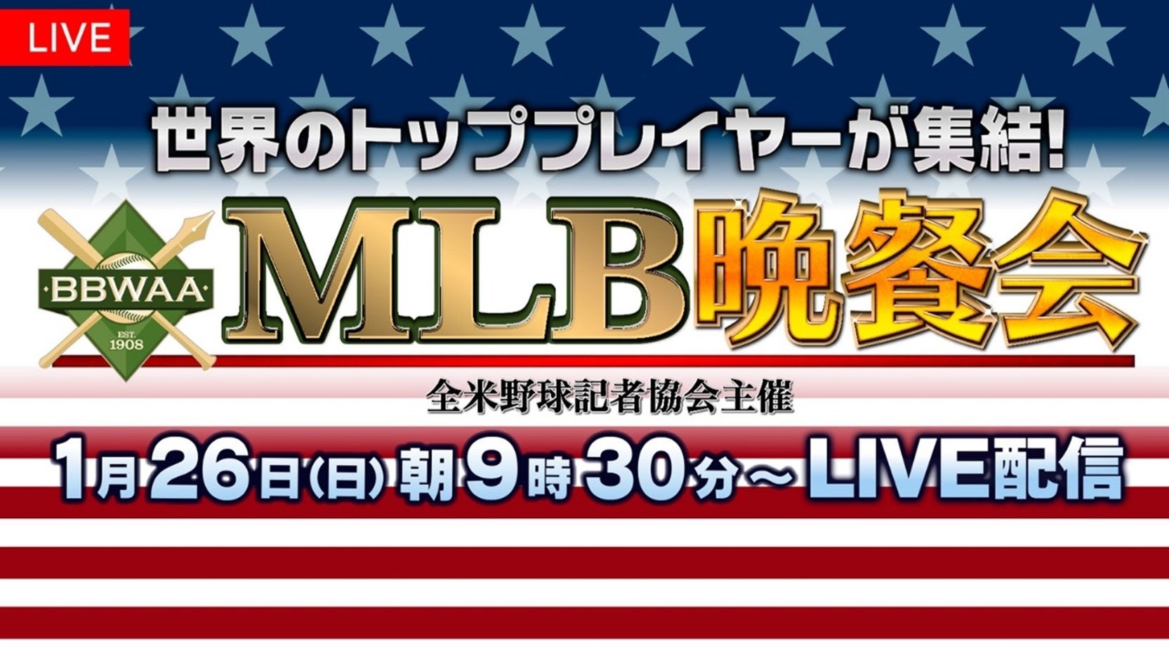 フジテレビが運営する動画配信サービスFODと、フジテレビONE スポーツ・バラエティにて、全米野球記者協会ニューヨーク支部主催のイベント『MLB晩餐会』を、1月26日(日)9時30分から生中継することが決定しました。
