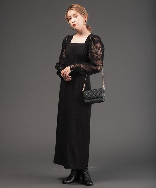 シックなブラックのカラーは一枚で着るとパーティーシーンにも活躍するワンピース。