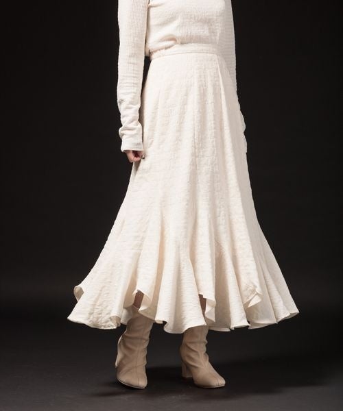 ひらっと揺れる裾のデザインにぽこぽことした表面感のある生地を選んで動く度に可愛いスカート。