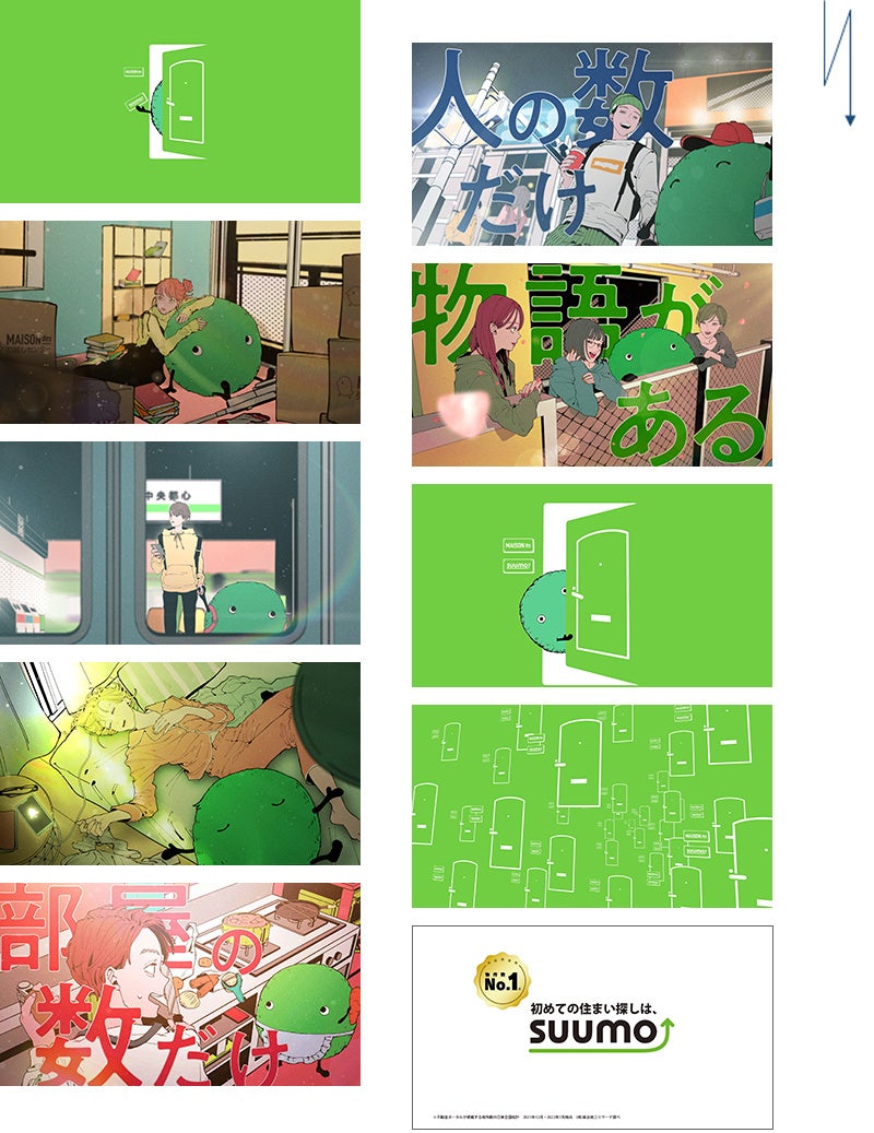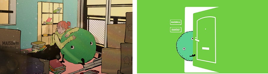 扉の先には、引っ越しを終えたばかり、段ボールが積まれた部屋の隅で、これから始まる新生活に思いめぐらせる女性が。別の扉を開けると、青年が新たな街でどこか不安げに電車を待っています。朝、起きるのも、移動、料理、人間関係も…。新生活は初めてのことの連続です。期待と不安が交錯する新生活の様子を「MAISONdes」ならではの楽曲とアートワークで紡ぎながら、「部屋の数だけ、人の数だけ、物語がある」ことをお伝えしていきます。本CMは、『SUUMO』が、新生活を迎える皆さんに寄り添い、応援する存在でありたいという思いから制作しました。それぞれのイラストで人物にそっと寄り添う、「MAISONdes」テイストの「スーモ」にも、ぜひご注目ください。
