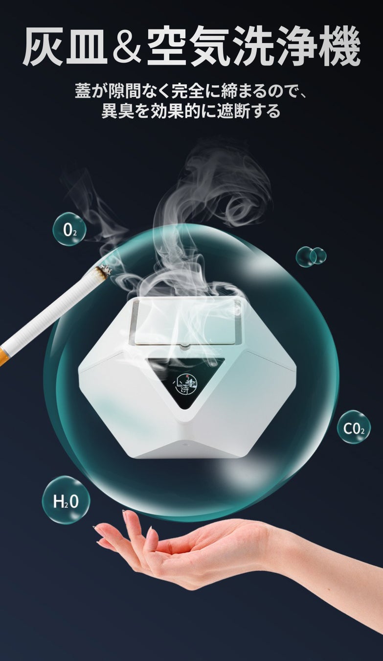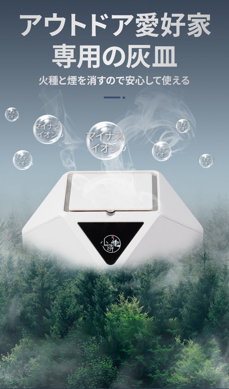 【タバコ用灰皿/軽量コンパクト/空気清浄機能/USB-C充電対応でポータブル】