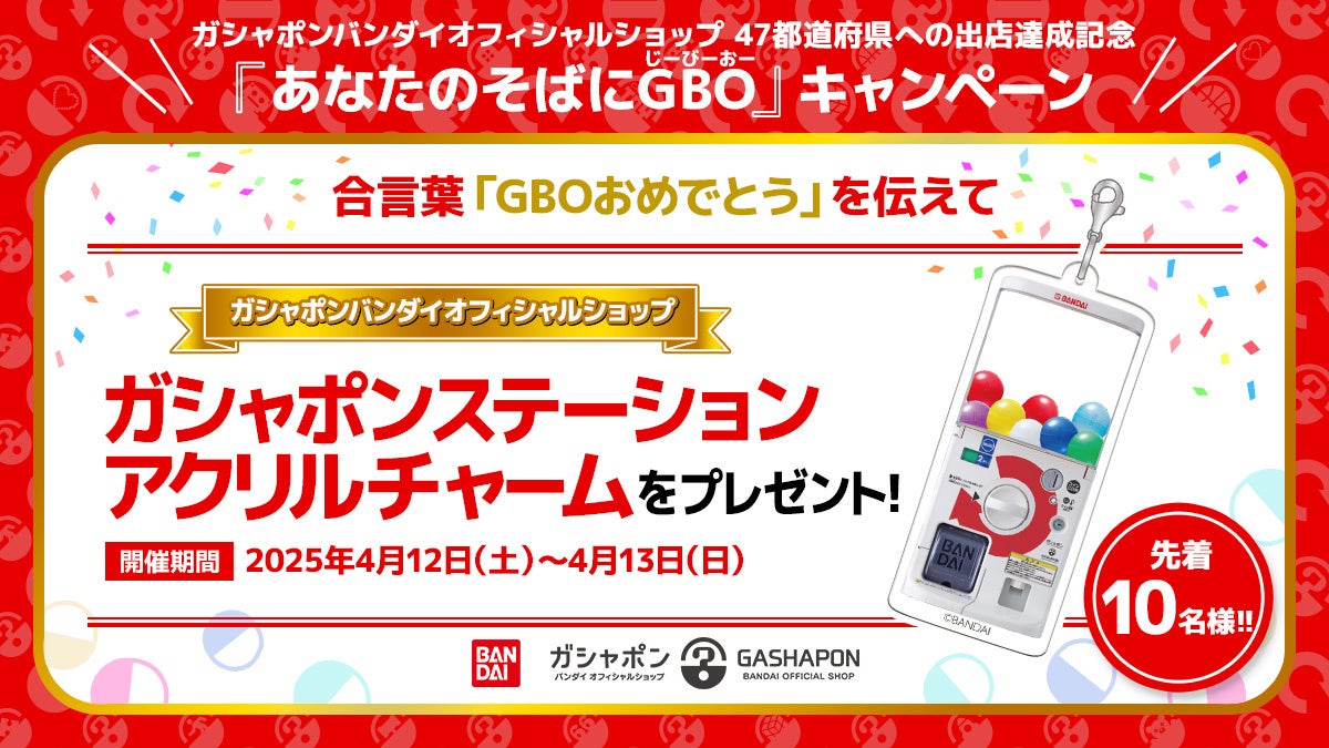 株式会社バンダイナムコアミューズメントは、株式会社バンダイのカプセルトイブランド「ガシャポン®」の専門店『ガシャポンバンダイオフィシャルショップ(以下GBO)』の全国47都道府県への出店達成を記念し、2025年4月7日(月)より全国のGBOで“あなたのそばにGBO”キャンペーンを開催します。