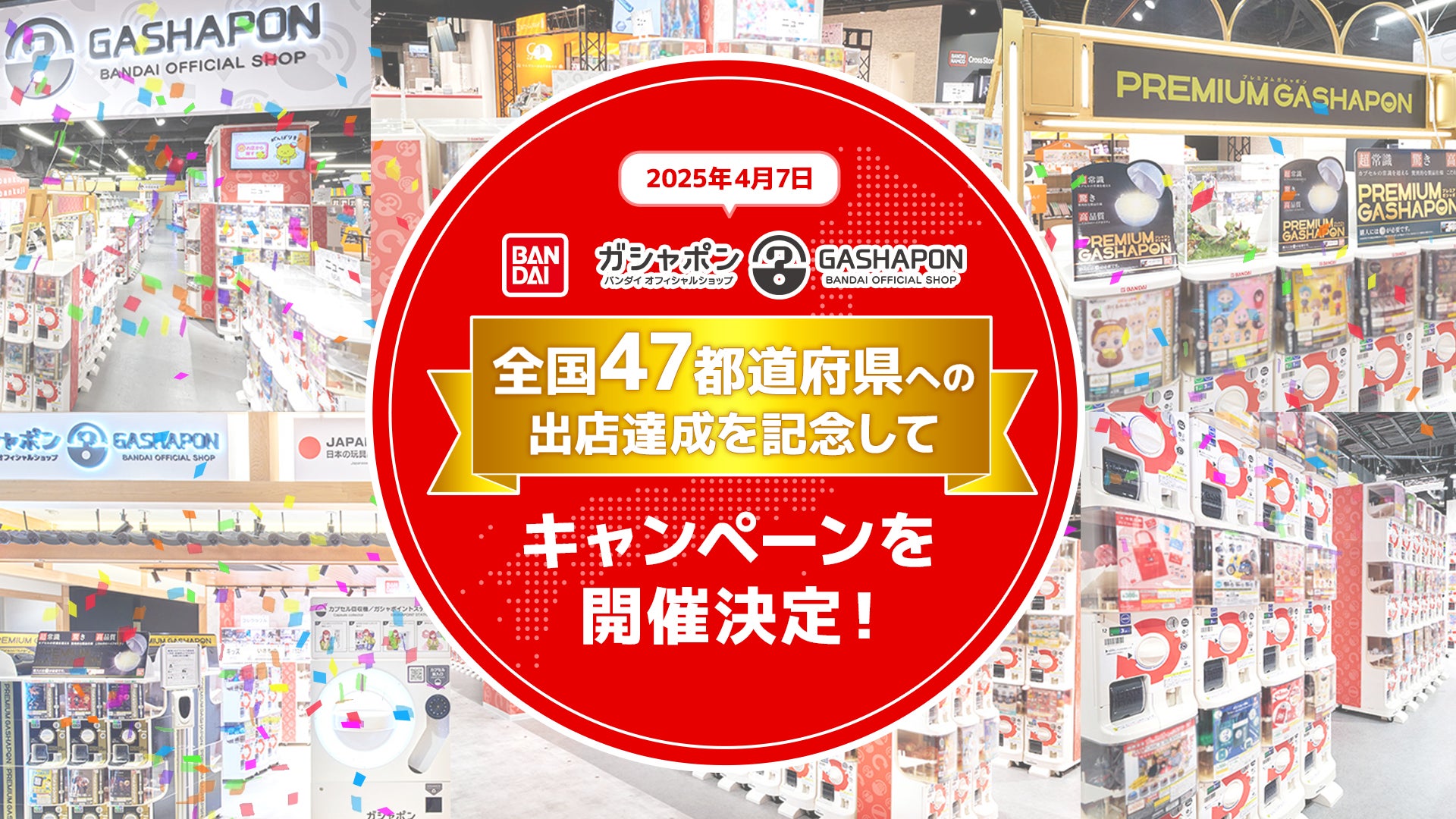 全国47都道府県へ出店達成!!記念キャンペーンを全国で開催 『ガシャポンバンダイオフィシャルショップ』 2025年4月7日(月)