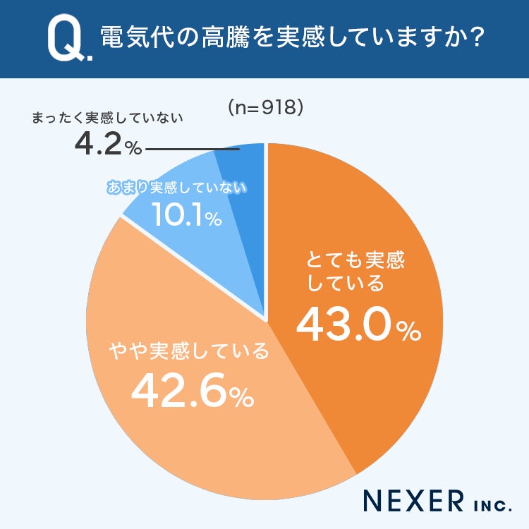 まずは、電気代の高騰を実感しているか聞いてみました。