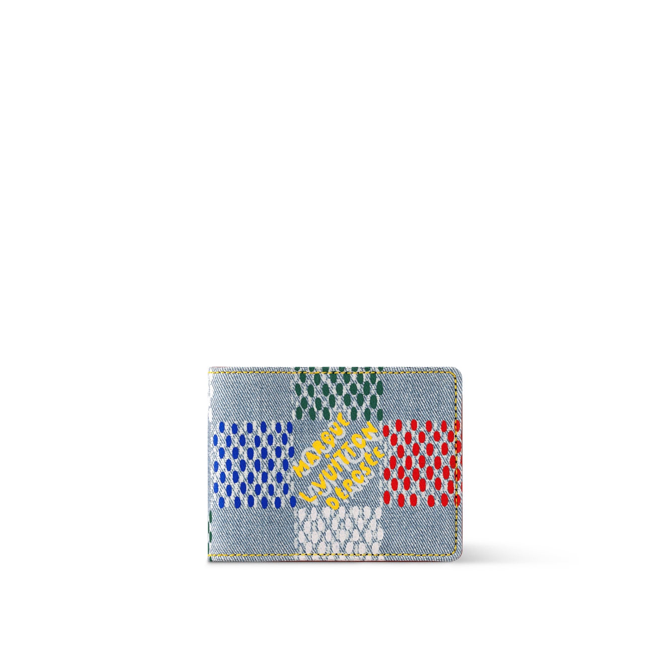 プレイフルな「ポルトフォイユ·ミュルティプル」は、大ぶりのデニムのスクエアと原色のアクセントを加えたスクエアを交互に配し、際立つレッドの「Marque L. Vuitton Déposée」シグネチャーを組み合わせました。内側に複数のカードスロットとコンパートメントを備えた、驚くほど実用的なポケットサイズの財布です。