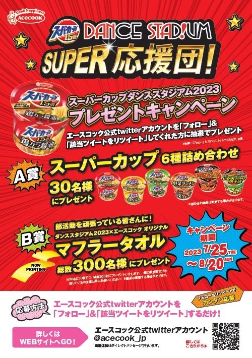 エースコック株式会社では、『スーパーカップダンススタジアム』を盛り上げるスペシャルサイト『SUPER応援団!』を開設します。
