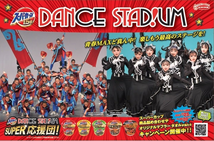 エースコック株式会社(本社:大阪府吹田市 社長:村岡寛)は、日本一の高校ダンス部を決める全国大会「第16回 日本高校ダンス部選手権 スーパーカップダンススタジアム」へ引き続き特別協賛をすることとなりましたのでご報告申し上げます。