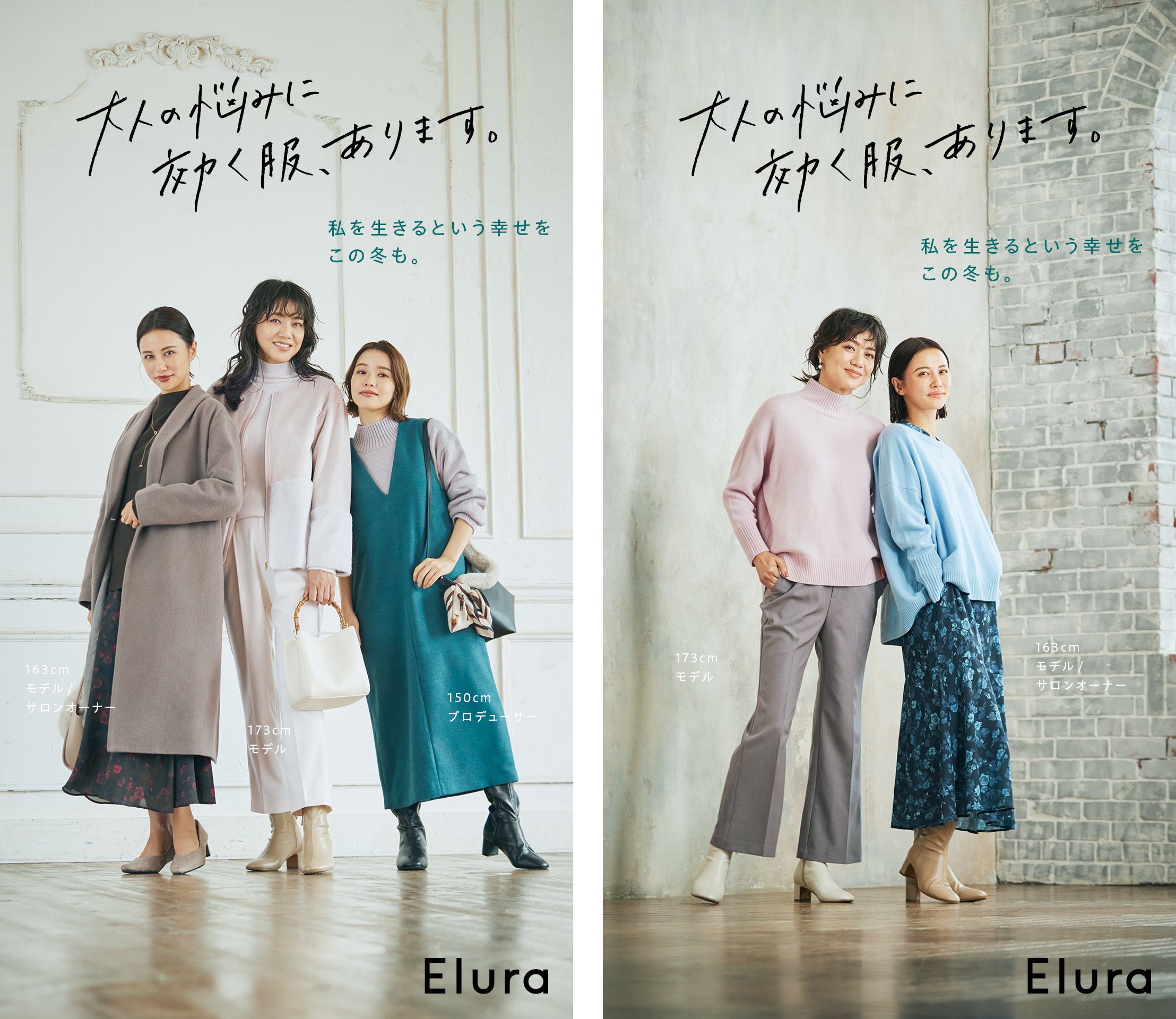 “大人の悩みに効く服”Eluraが前田典子さん/鳳山えりさん/猪鼻ちひろさんを起用した冬ビジュアル第1弾を10月14日(金)に公開