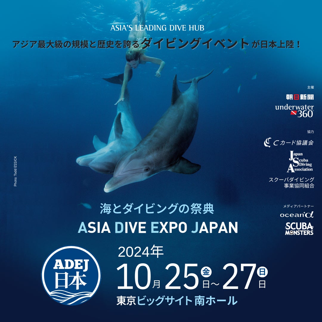 また、シンガポールで催されるアジア最大のダイビングイベントが日本に初上陸し、「ASIA DIVE EXPO JAPAN」として開催します。マリンレジャーの楽しみだけでなく、豊かな海と自然について考える「海とダイビングの祭典」です。多数のゲストスピーカーが登壇し、イベントを盛り上げます。