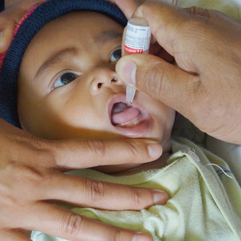 ポリオ(急性灰白髄炎)は、主に5歳未満の小児が罹かる疾患で、ワクチンで予防できます。