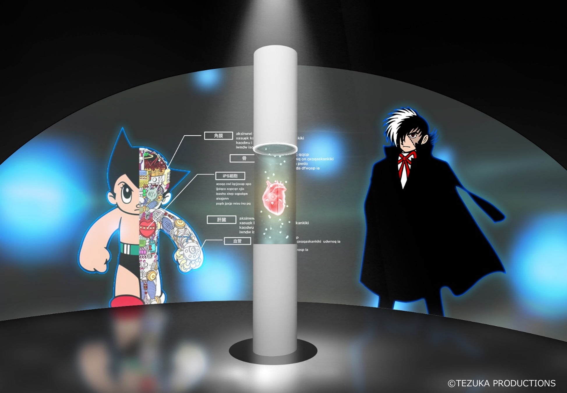 「からだ(未来の医療)」展示エリアのナビゲーターとして、天才的な技術を持つ外科医「ブラック・ジャック」が登場。エグゼクティブプロデューサー・澤芳樹氏が開発する、“いのちの象徴”である『iPS心臓』をはじめ、「からだ(未来の医療)」に関する様々な最新テクノロジーを提案します。患者を救いたいという誰よりも強い意志を持つ「ブラック・ジャック」による「生命とは何か」「人としての幸福とは何か」という問いかけ-。「ブラック・ジャック」の姿から、パビリオン全体のテーマでもある「真に豊かな社会」のあり方にも繋がります。