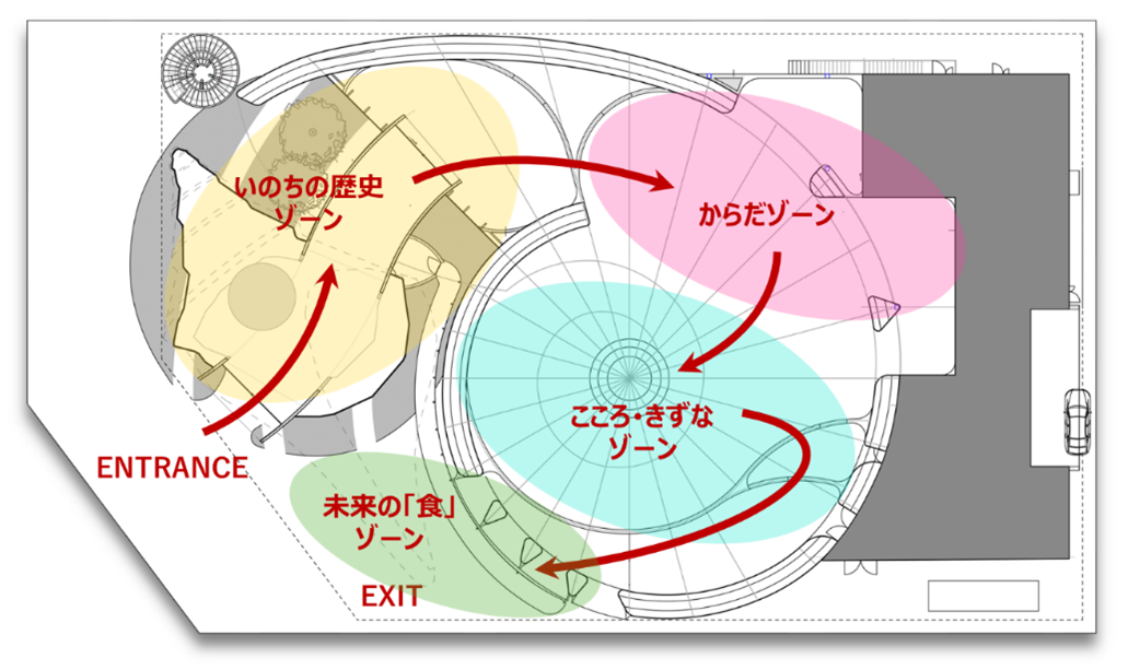 来場された方々に、「いのち」の歴史を学び、「いのち」を支える人類の英知や未来社会のデザインに触れることで、「いのち」への感謝を感じていただきたいという想いを込めています。