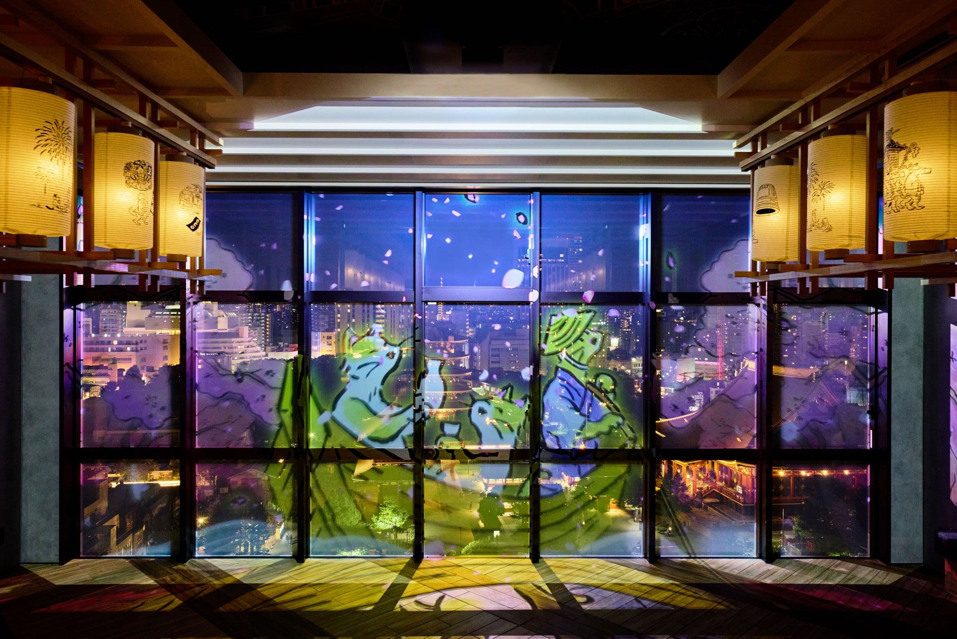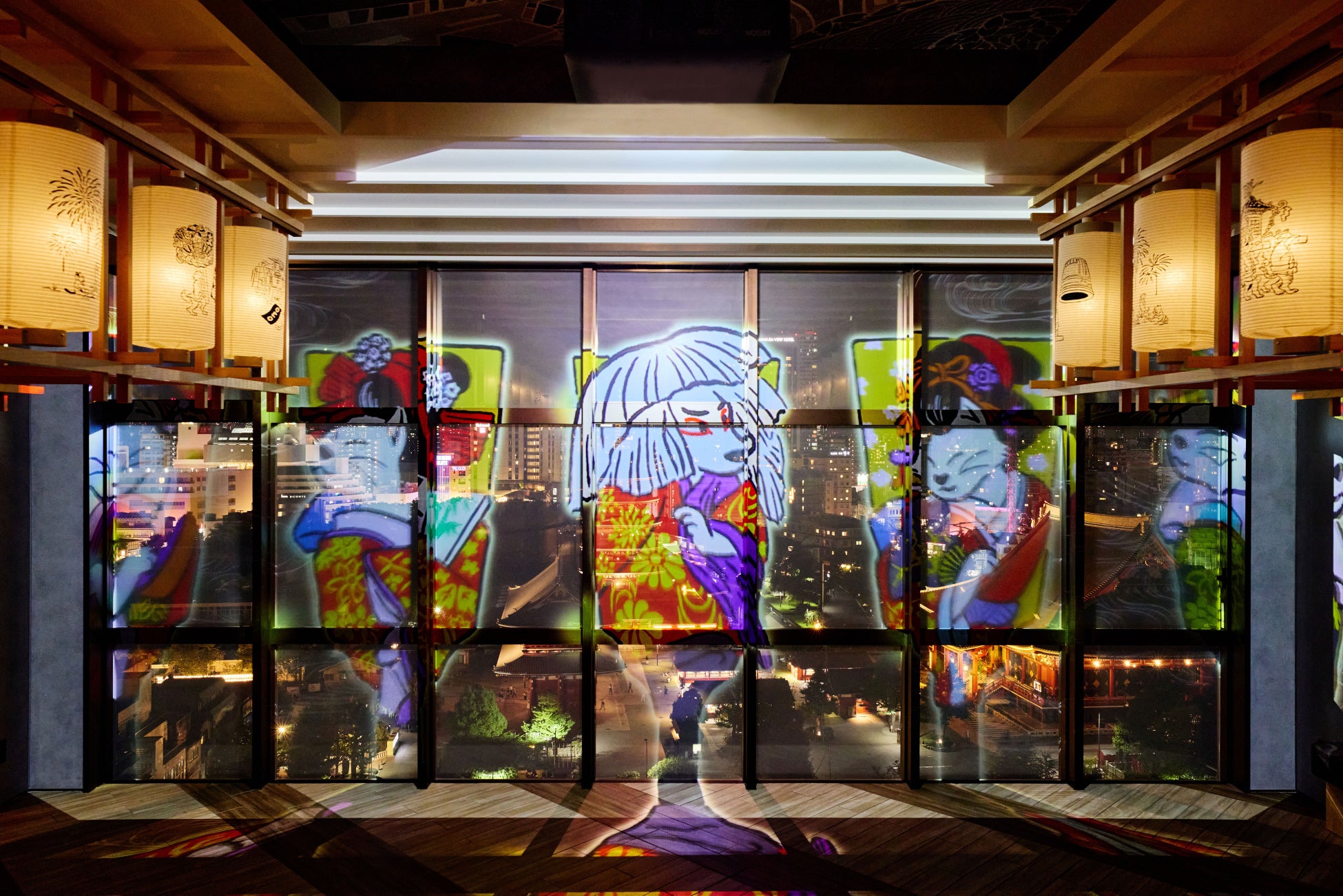 ここでしか観られない夜景をより深く楽しめるよう、20:00から1時間ごとに没入感を体験できる映像演出を行います。OMOベースの照明がトーンダウンすると、浅草寺の幻想的な夜景がより煌めきを増して浮かび上がります。その後、夜景を彩るように、浅草の歳時行事にまつわる映像が大きな窓全体に映し出され、一年を通して活気あふれる浅草の様子を描きます。一日では楽しみ切れなかった浅草の魅力に触れながら、OMO3浅草でしか出会えない夜景と映像の融合に心ゆくまで浸れます。