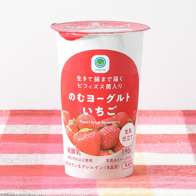【内容】いちごの果肉の食感をしっかりと感じられるヨーグルトドリンクです。生乳を使用し、コクのある味わいに仕立てました。
