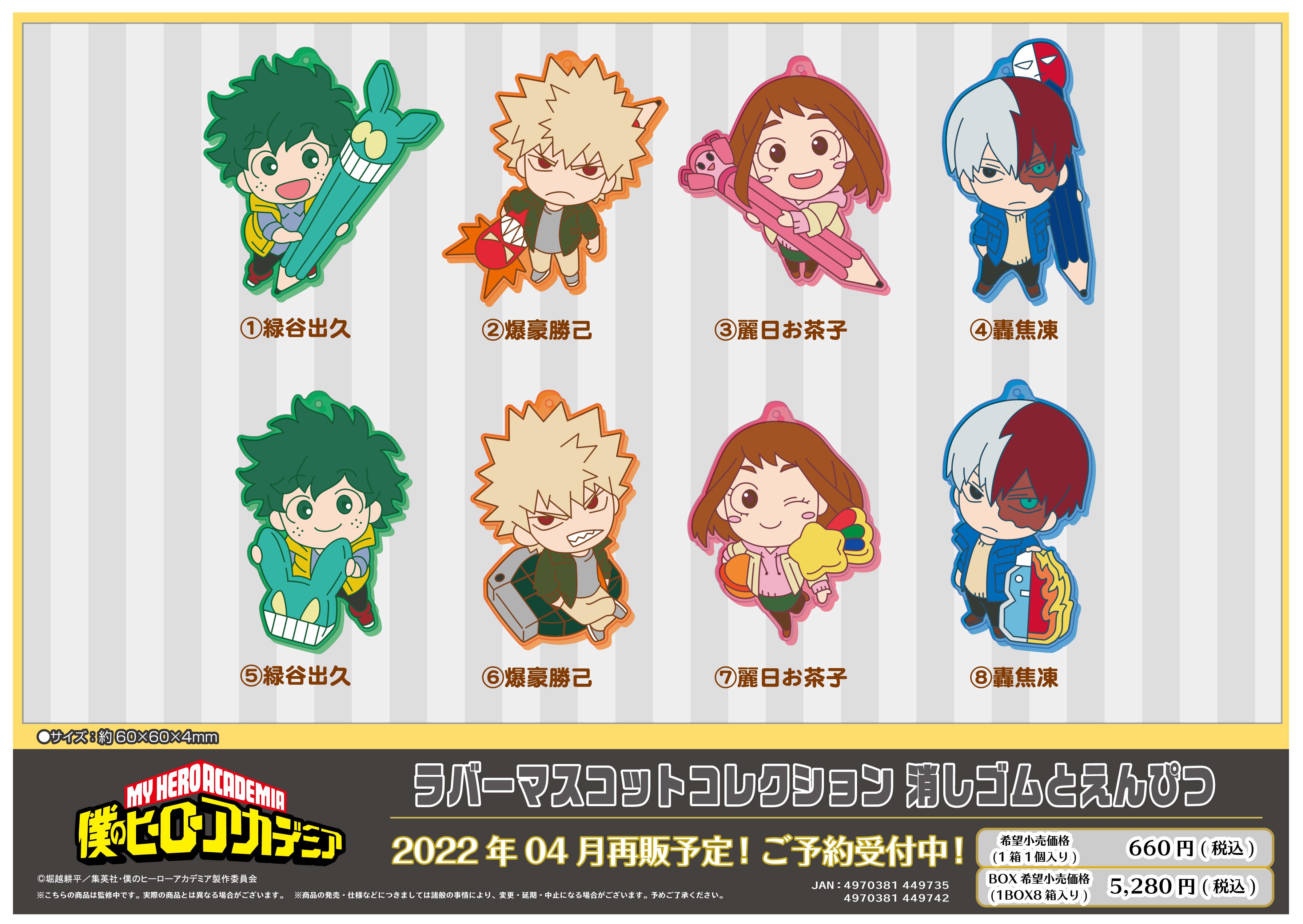 株式会社リアライズ(本社:東京都台東区)は、1月30日〜2月6日までの期間中、アニメ・漫画専門ECサイトであるAnimo(アニモ)で『【再販】僕のヒーローアカデミア ラバーマスコットコレクション-消しゴムとえんぴつ- 1BOX(製造メーカー:エンスカイ)』の予約再販を開始いたします!