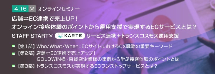 【トランスコスモスオンラインセミナー】店舗⇄EC連携で売上UP!オンライン接客体験のポイントから運用支援で実現するECサービスとは?を4/16(火)に開催