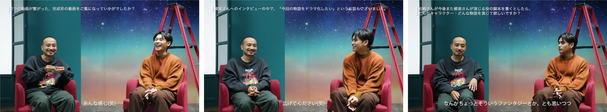 柳楽優弥さんと、脚本を手掛けたかもめんたる・岩崎う大さんによる対談も実施しました。脚本の制作秘話や、太陽という役柄を演じてみての感想、お互いの第一印象などについて語っています。