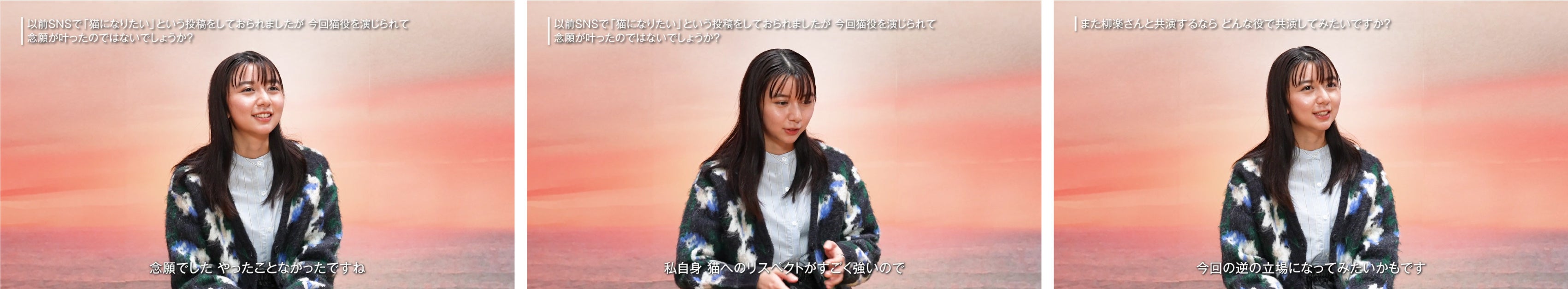 メイキング動画では、柳楽さんの打ち合わせ中の真剣な表情や、猫のぬいぐるみを上白石さんに見立てて演技をする貴重な撮影の裏側を見ることができます。