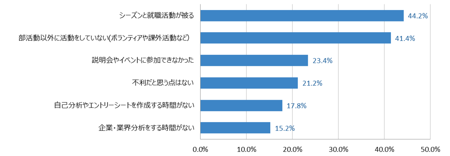 【図4】運動部学生が就職活動に不利だと思う点(上位抜粋)