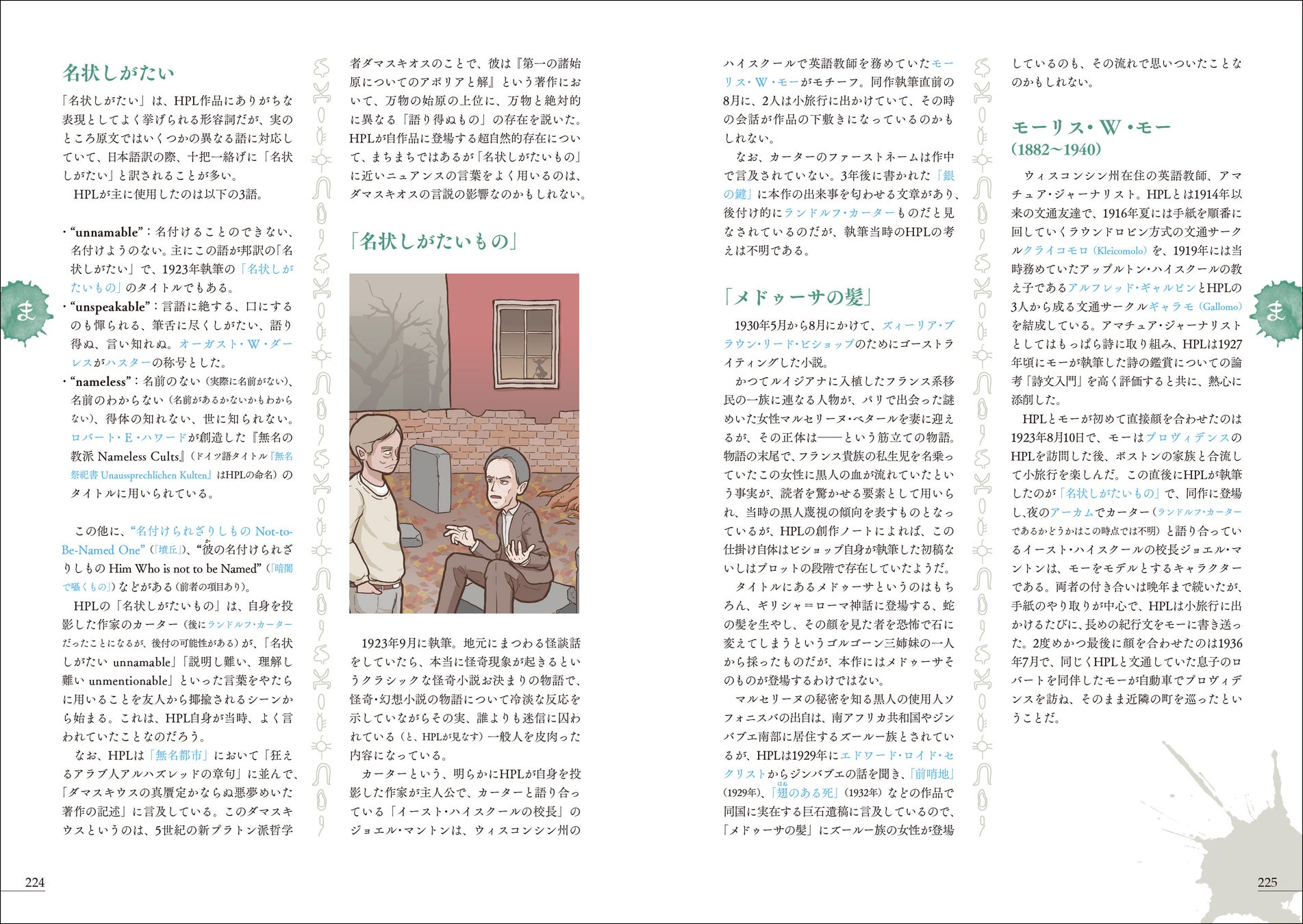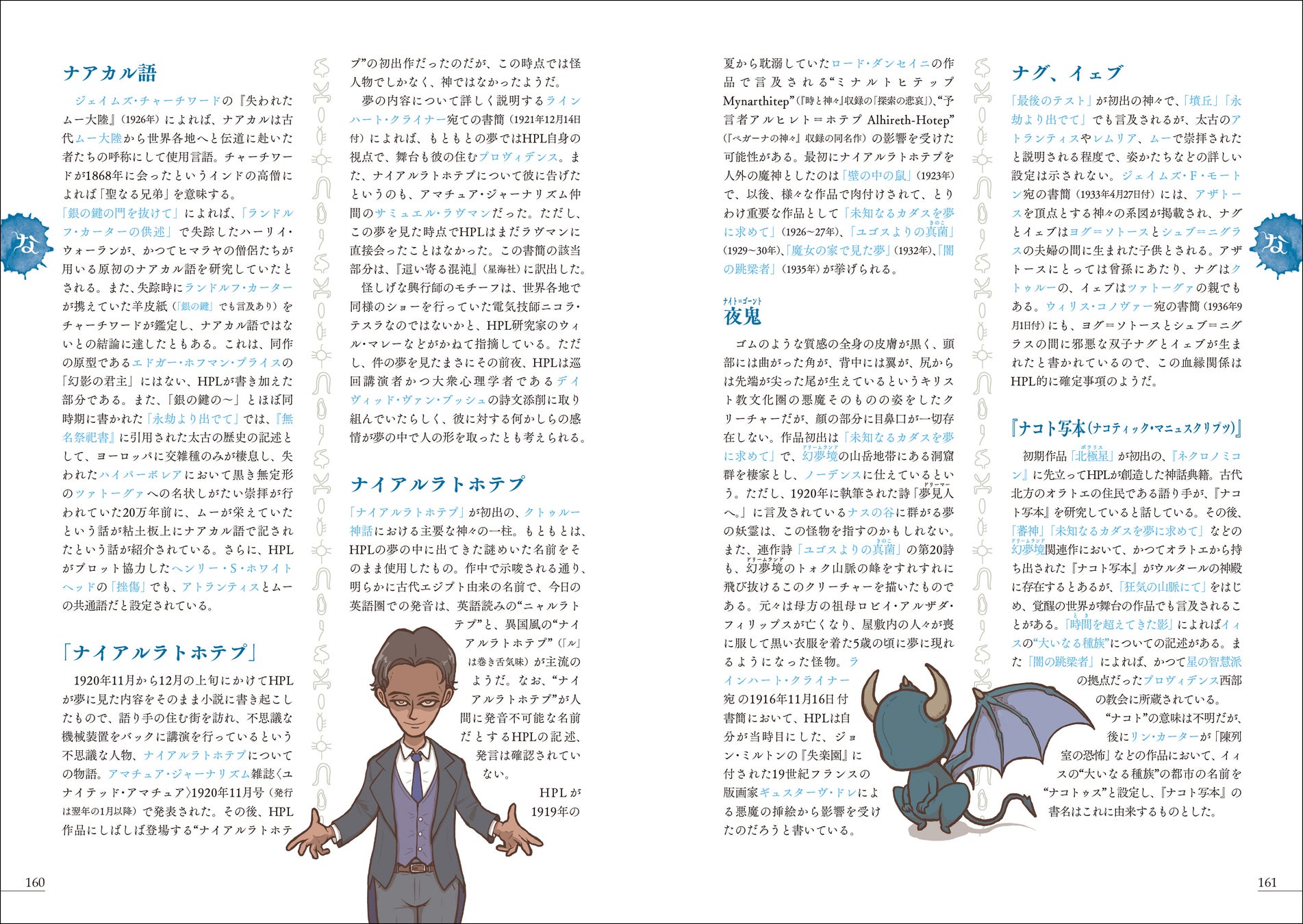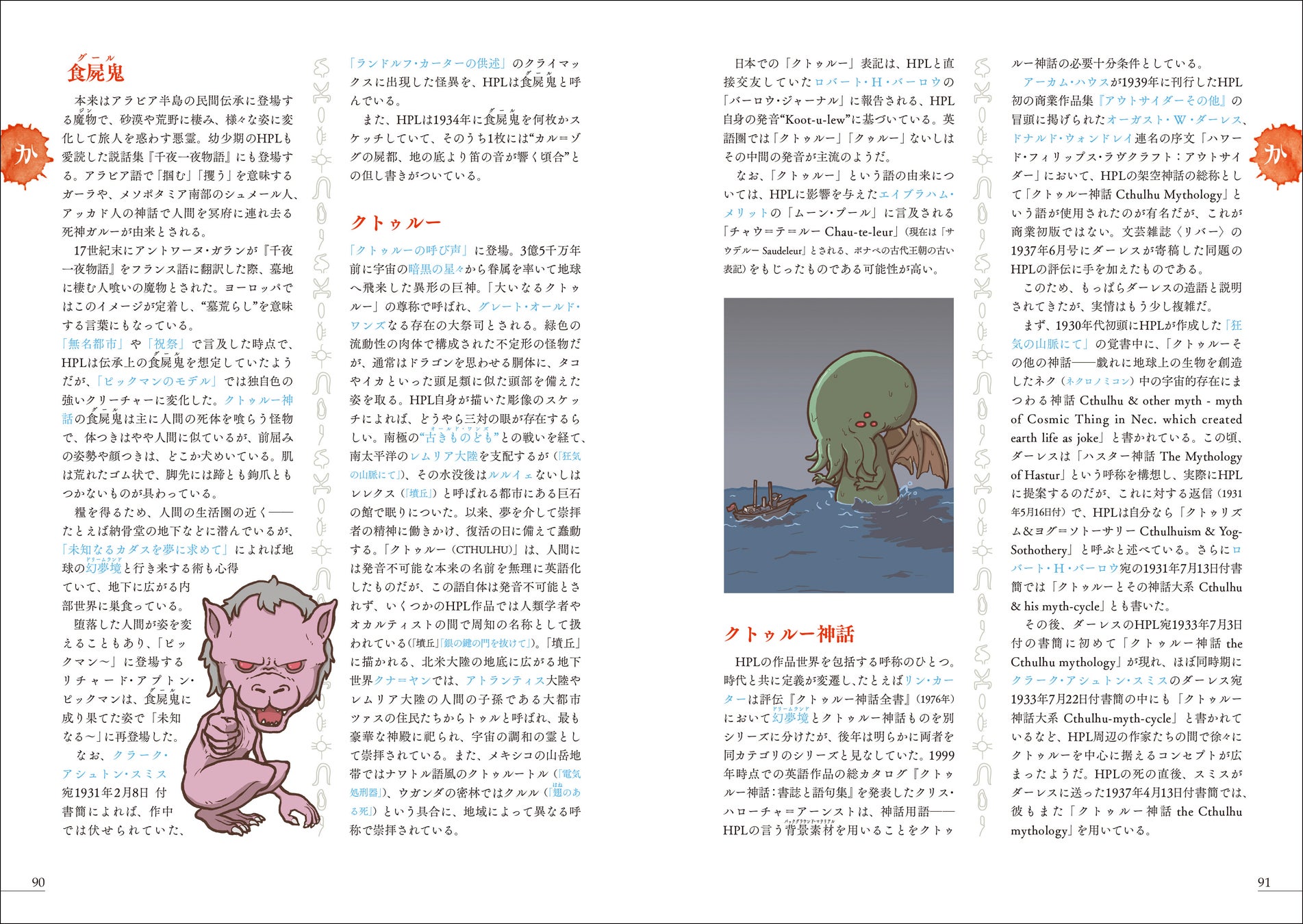 各項目には、作品の雰囲気を捉えたイラストも多数掲載。視覚的にも楽しみながら、ラヴクラフトの創り出した幻想と恐怖の世界をより身近に感じることができます。