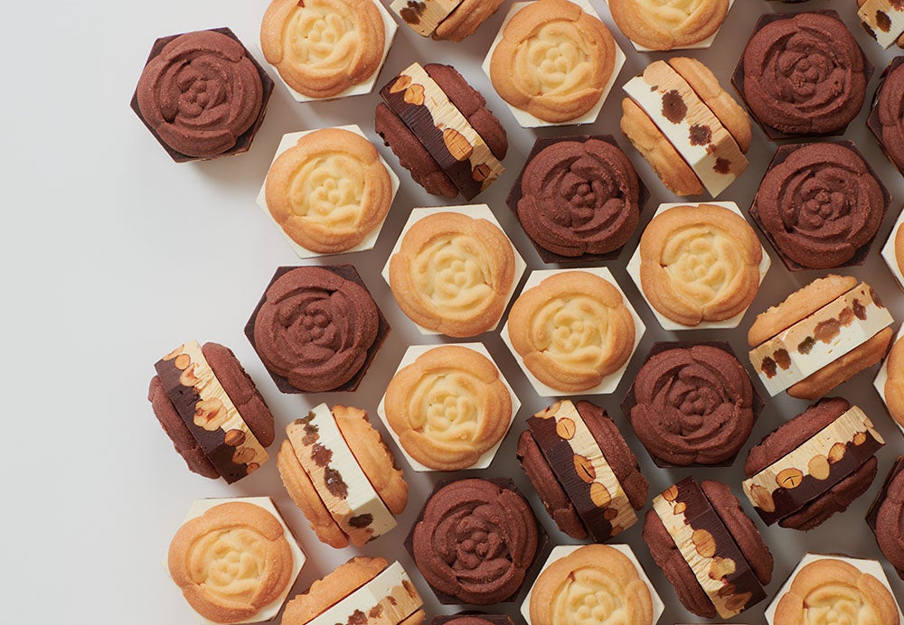 シェフが世界中から選び抜いたフランス産発酵バターをラングドシャに新採用。一層なめらかになったとろける生食感ショコラクリームをたっぷり二重にしぼりました。芳醇なコクと香りをお楽しみください。