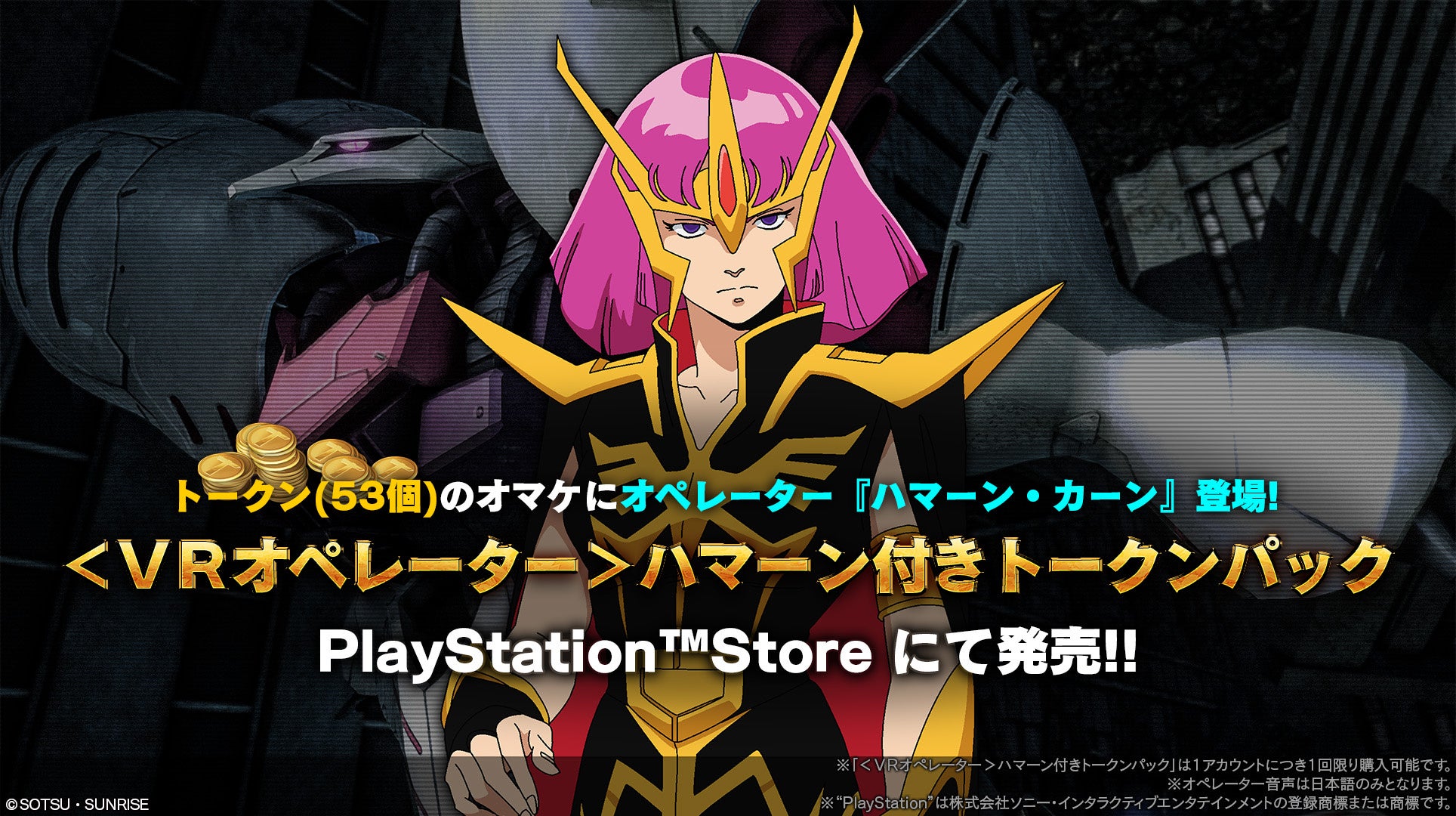 期間中PlayStation™Storeにてトークン53個に<VRオペレーター>ハマーンがおまけで付いてくる