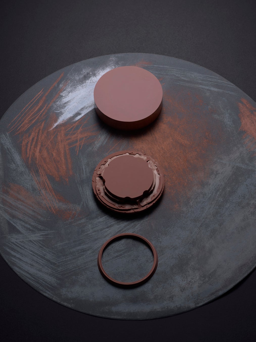 セラミック(ZrO2 酸化ジルコニウム)は魅惑的な素材であるものの、特に扱いが難しい素材でもあります。耐久性に優れ、傷や腐食に強く、軽量で低アレルギー性のセラミックは、極めてなめらかで極上の肌触りです。独特の光沢感と深みのある、多彩な色を作り出すことができます。しかし、ブラウンは、ブラックやホワイトよりもさらに至難の業。「ラ·ファブリク·デュ·タン ルイ·ヴィトン」のデザインスタジオが選んだ完璧なブラウンの色合いを実現するには、高度な技術を要する複雑な工程が必要となります。