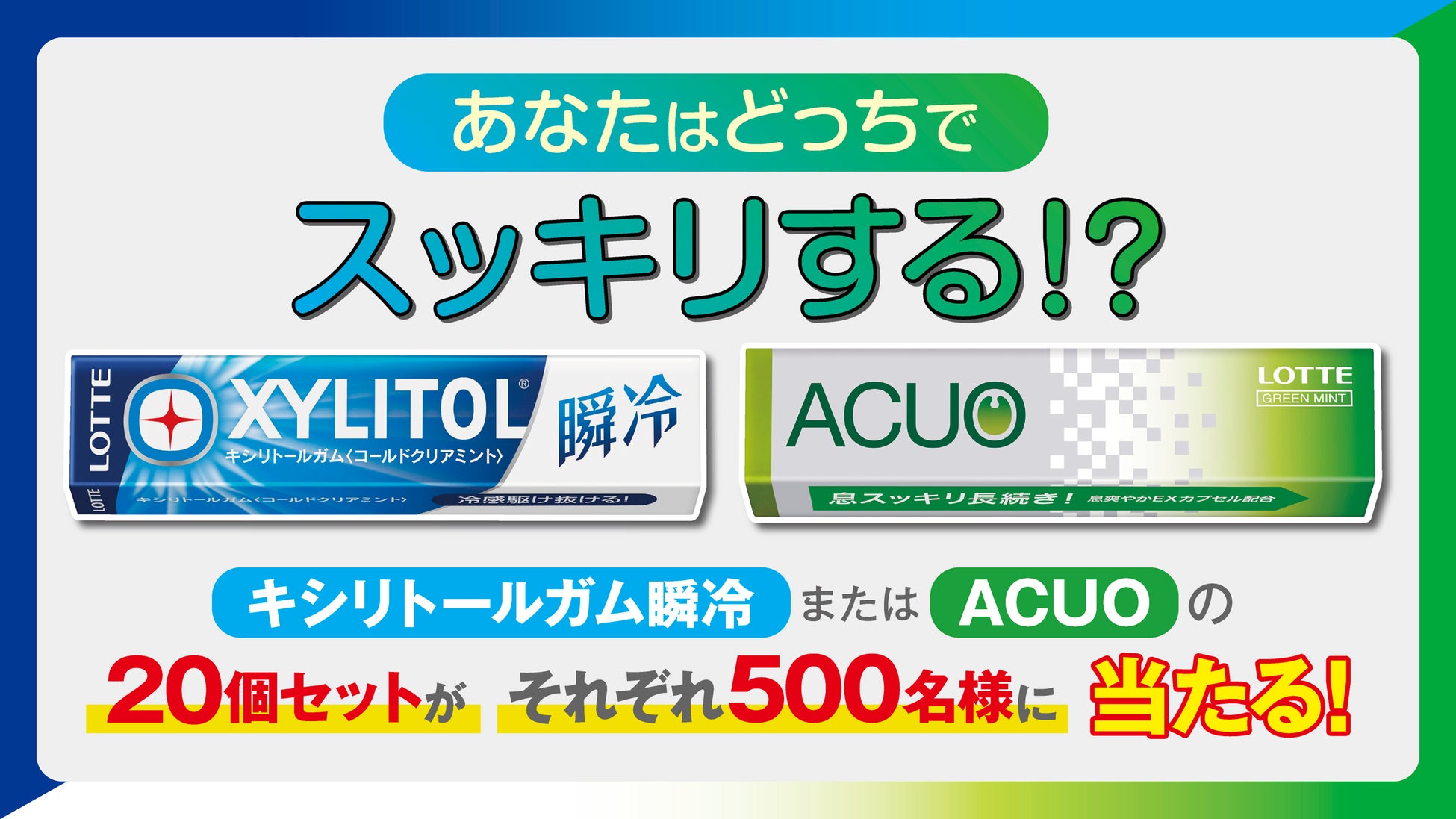 ●賞品:キシリトールガム瞬冷<コールドクリアミント>またはACUO<グリーンミント>20個セット