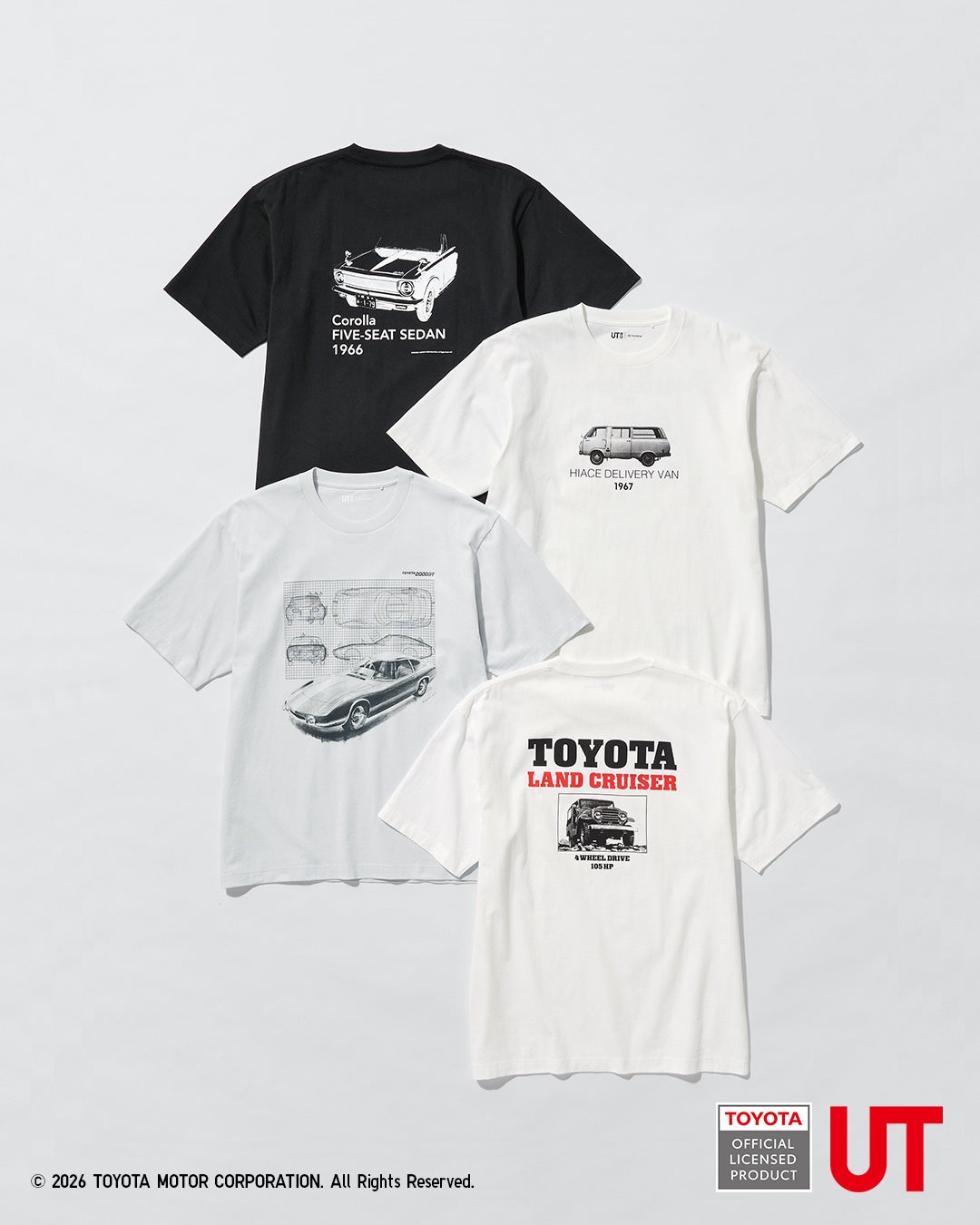 UTのアートワークには、トヨタの多様なモノづくりの歴史を表現できると考え、「ランドクルーザー」「カローラ」「ハイエース」「2000GT」の4車種をフィーチャーしました。