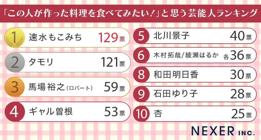 株式会社NEXER・「この人が作った料理を食べてみたい!」と思う芸能人に関する調査