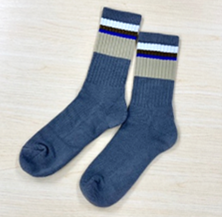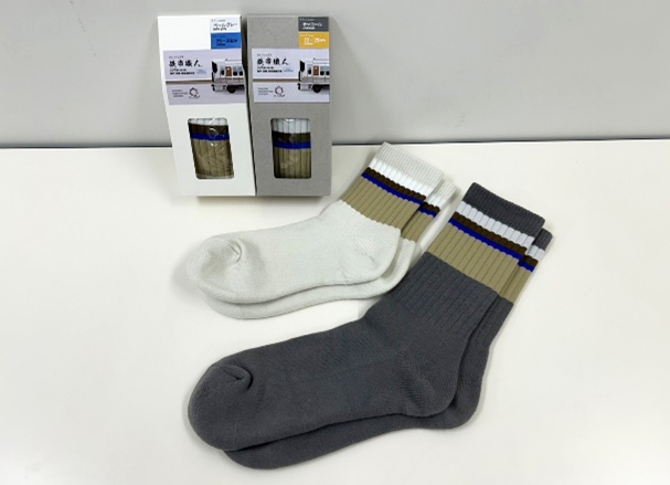 「TRANGIS←」製品の第1弾である「ステンレス製名刺入れ 鉄帯職人」に続き、より幅広い方に、カジュアルかつ身近に鉄道デザインを楽しんでいただける製品として、ラインソックスを製作させていただきました。
