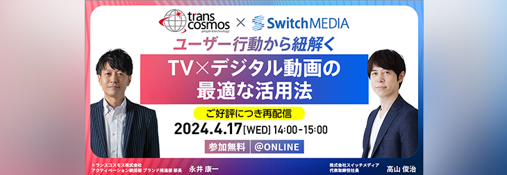 【トランスコスモスオンラインセミナー】【ご好評につき再配信】ユーザー行動から紐解くTV×デジタル動画の最適な活用法を4/17(水)に開催