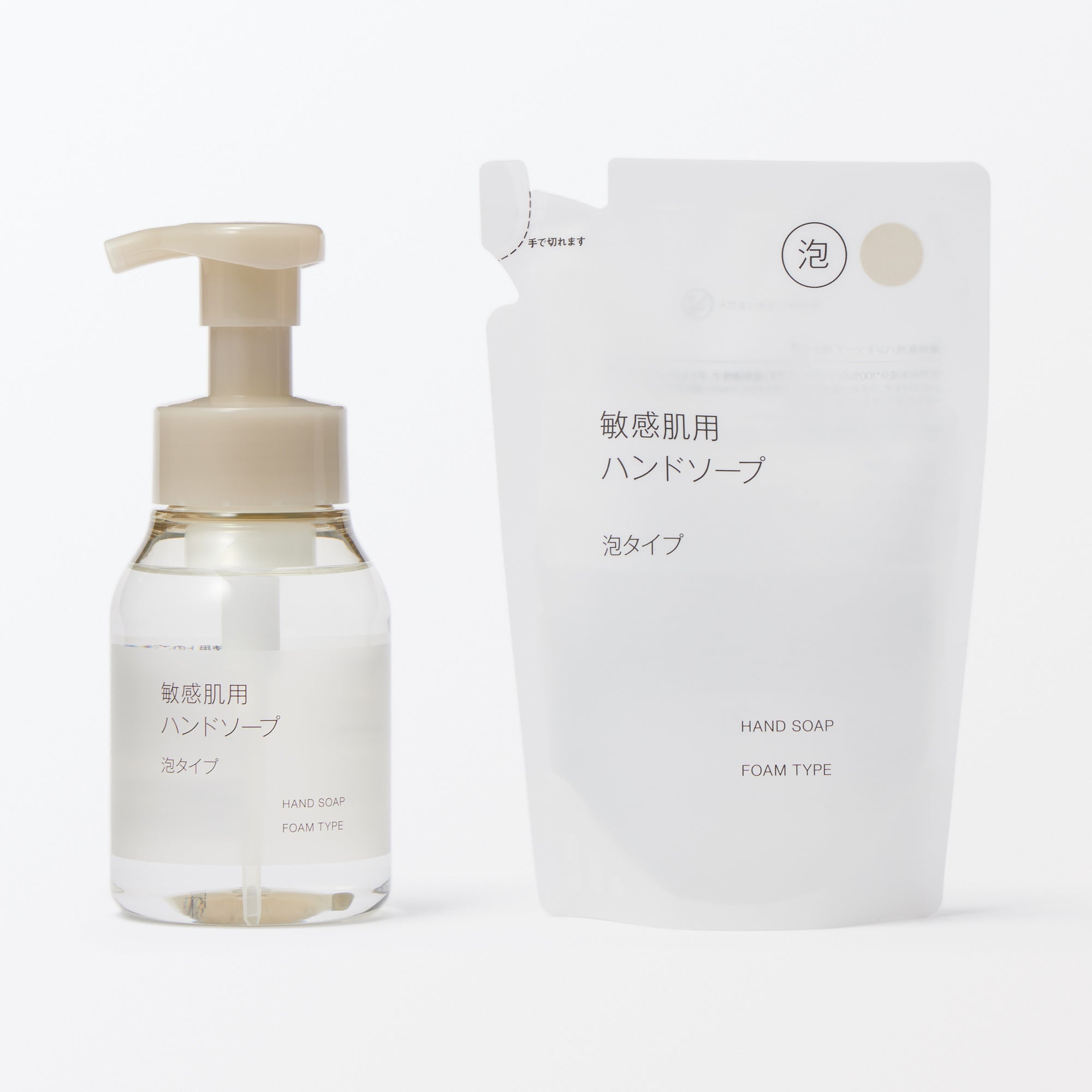 またボディケア用品として「敏感肌用石けん 全身用」、「敏感肌用 ハンドソープ」2種を新たにラインナップしました。液体タイプ、泡タイプのボディソープだけでなく、固形タイプの石けんもラインナップし、洗い方の好みに合わせてテクスチャーを選ぶことができます。