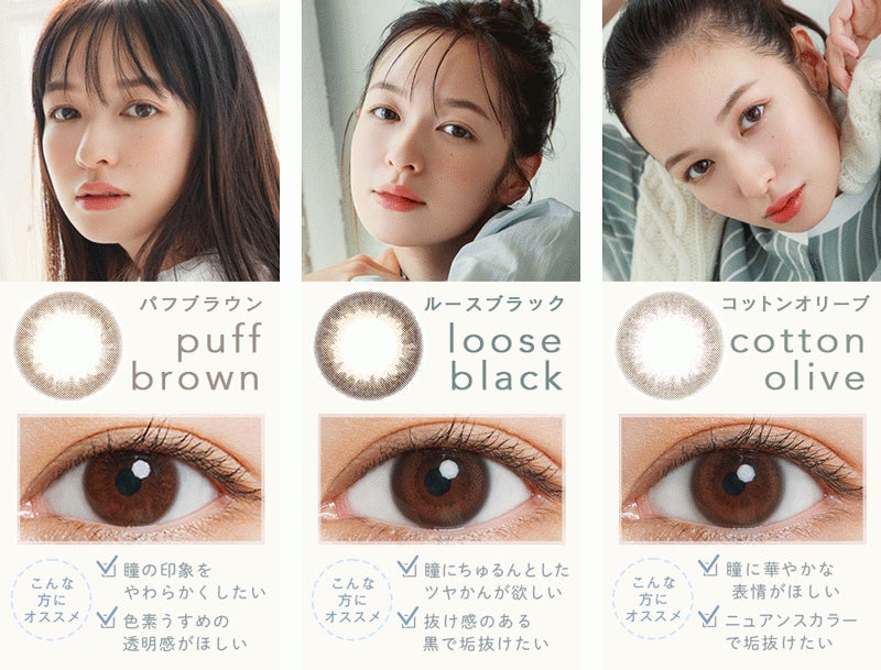 [カラー数] 全3色(パフブラウン/ルースブラック/コットンオリーブ)