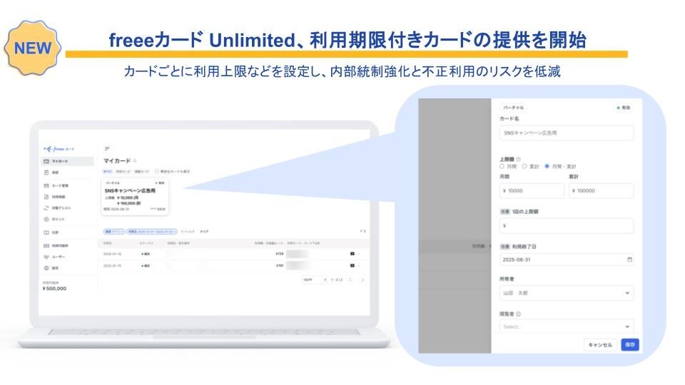 フリー株式会社(本社:東京都品川区、CEO:佐々木大輔、以下「freee」)は、法人向けコーポレートカード「freeeカード Unlimited」において、利用期限付きカードの提供を開始しました。