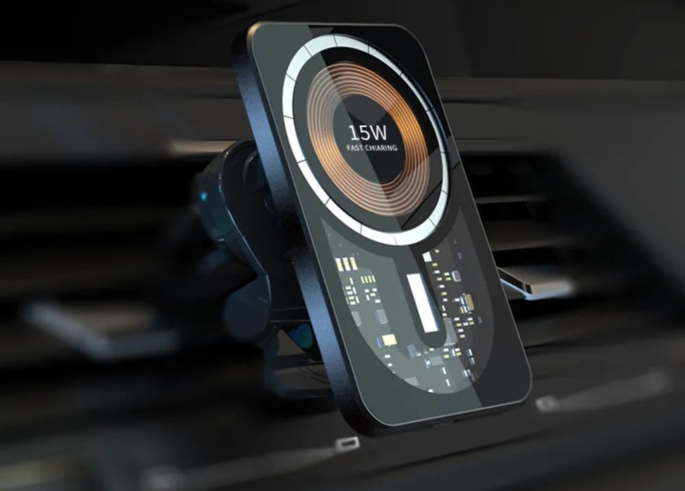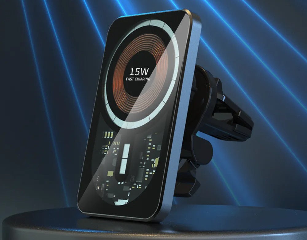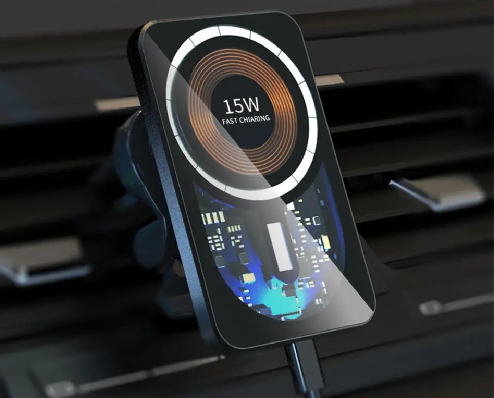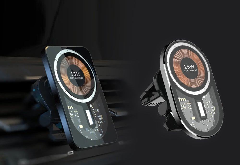 - 透明スケルトン近未来デザインでマグネット装着 車でも便利にiPhoneを充電
