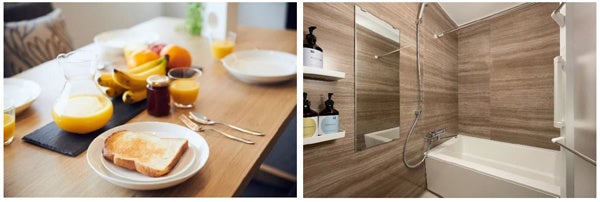 全てのお部屋にキッチンや調理器具、ダイニングテーブルをご用意。旅先でも自分の家のようにくつろいで過ごせます。洗面台とバスルームは分かれ、湯船に浸かってゆったり疲れを癒していただけます。また、ランドリールーム(一部客室は洗濯乾燥機付)があるため中長期滞在も快適です。