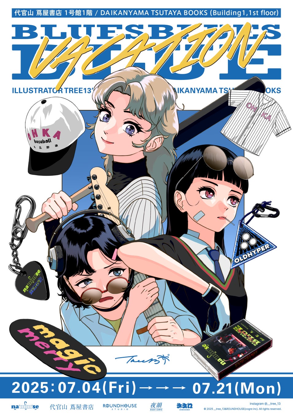韓国のイラストレーター、tree13が、野球、音楽、ライディングの3つのテーマを中心に制作したアートワークやオリジナルグッズを展示販売します。