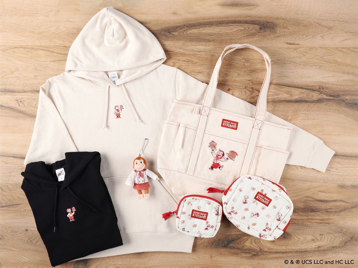 新作グッズは、寒い季節でもジョージと一緒にお出かけが楽しめるパーカーやトートバッグなど5アイテムを発売します。