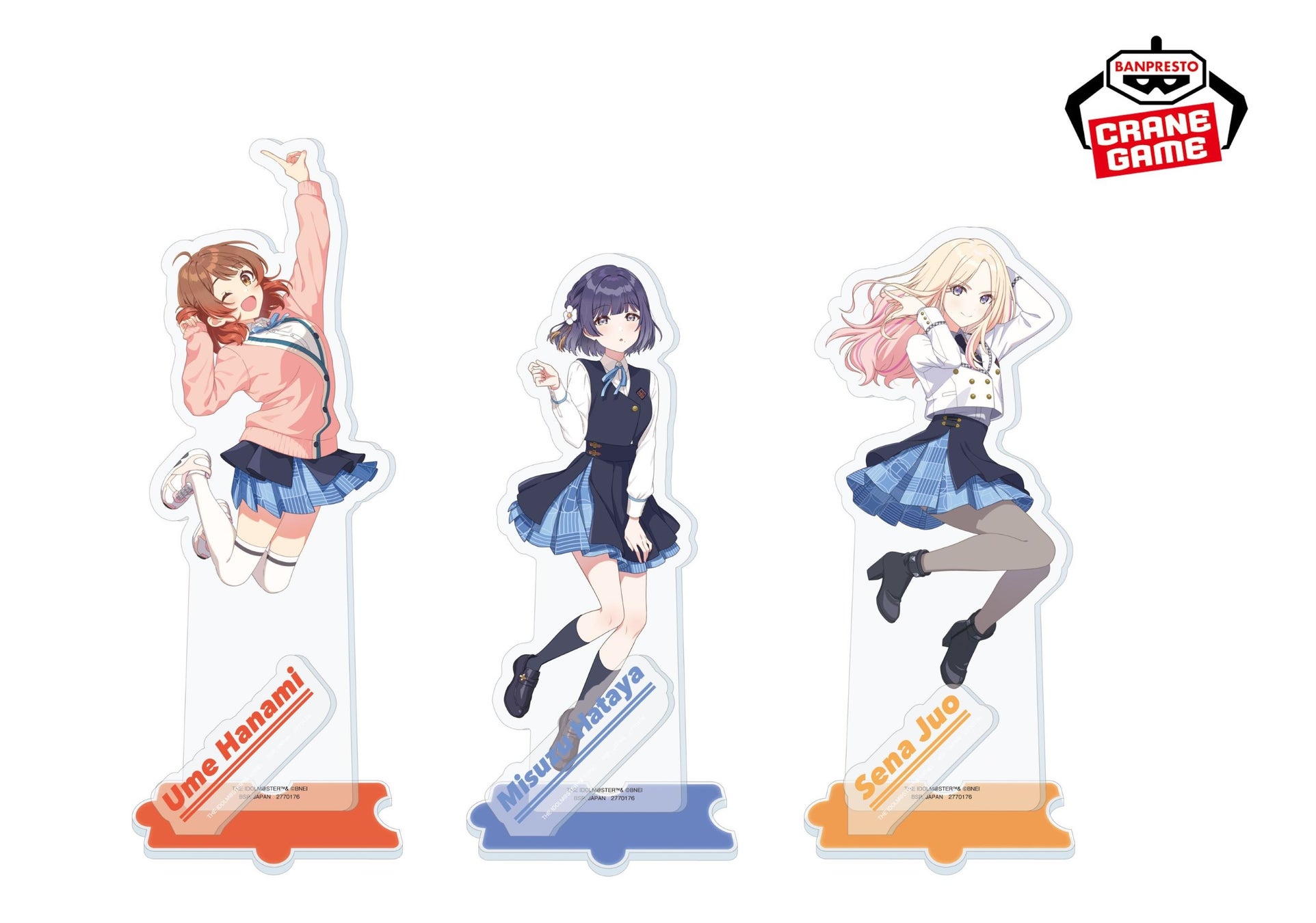 キャンペーン描きおろしイラストを使用した花海佑芽・秦谷美鈴・十王星南のビッグサイズのアクリルフィギュアが登場!