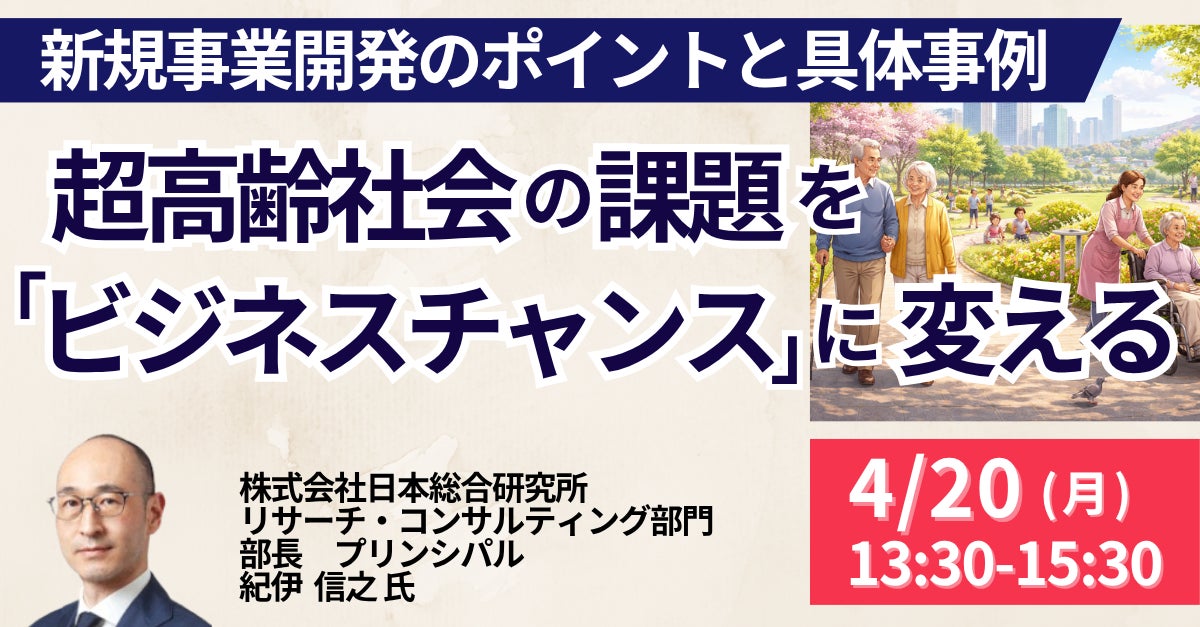 【JPIセミナー】「超高齢社会の課題を “ビジネスチャンス” に変える 新規事業開発のポイントと具体事例」4月20日(月)開催