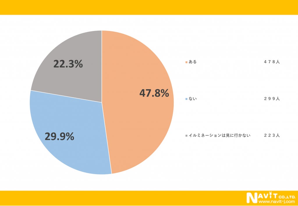 寒さとイルミネーションの美しさをどちらを取るかという、ある意味究極の選択のようなアンケートに対して、半数近くの人が「ある」と回答されいます。数字にしたら47.8%の人なので、かなりの数字になりました。