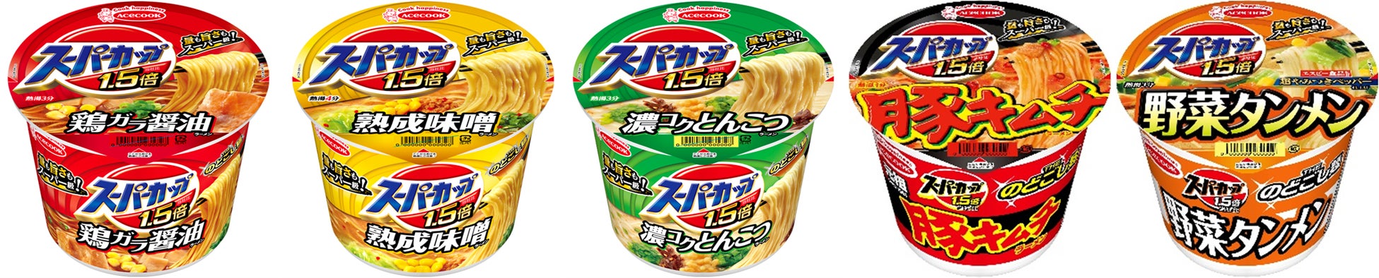 エースコック株式会社(本社:大阪府吹田市 社長:村岡寛)は、2023年9月4日より、「スーパーカップ1.5倍 しょうゆラーメン/みそラーメン/とんこつラーメン/豚キムチラーメン/野菜タンメン」をリニューアルします。