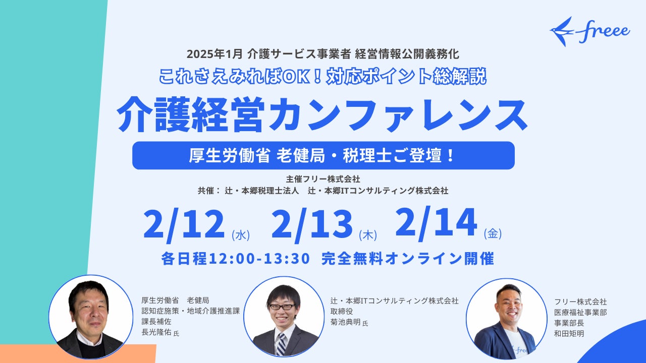 フリー株式会社(本社:東京都品川区、CEO:佐々木大輔、以下「freee」)は、令和6年度の介護保険法改正により義務化された、介護サービス事業者経営情報データベースシステム(※)の運用開始に伴う介護サービス事業者の経営情報の報告等の義務化に対応する機能を2025年3月中に提供開始することをお知らせします。