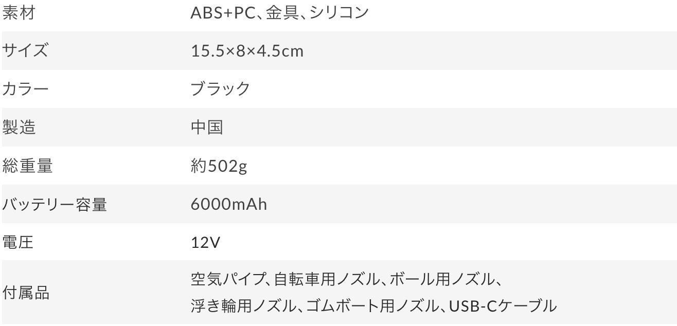 6000mAhの大容量バッテリーなので、満タンに充電した後であれば、最大4台の車のタイヤに空気を入れることができます。