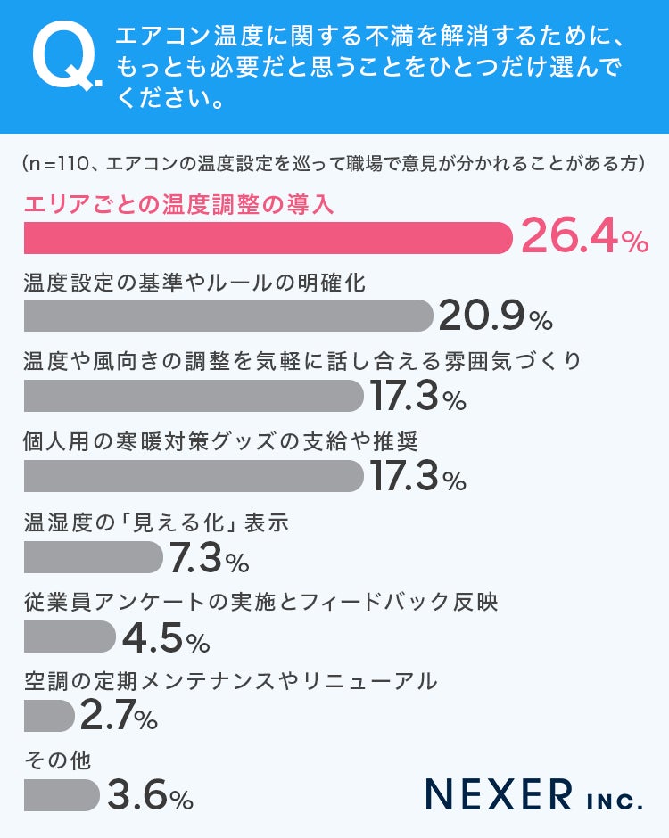 26.4%の方が「エリアごとの温度調整の導入」と回答し、最多となりました。