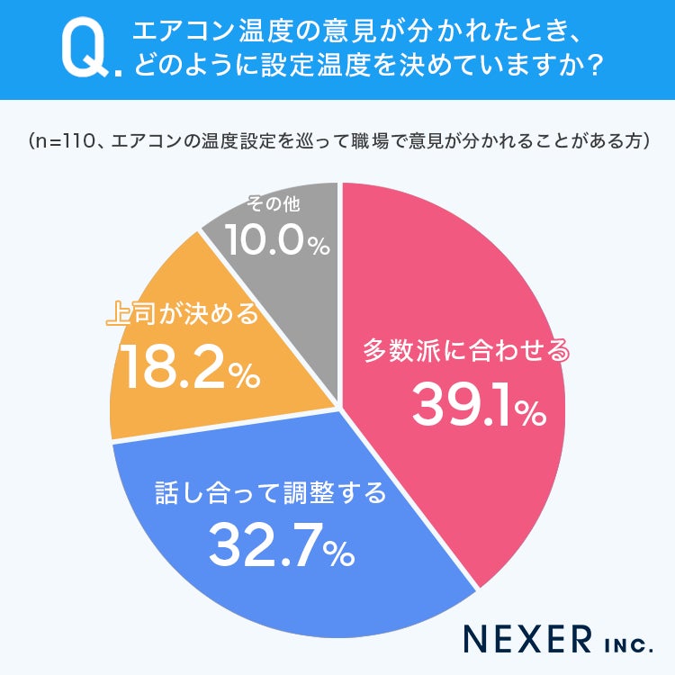 職場のエアコン温度の意見が分かれたとき「多数派に合わせる」回答理由