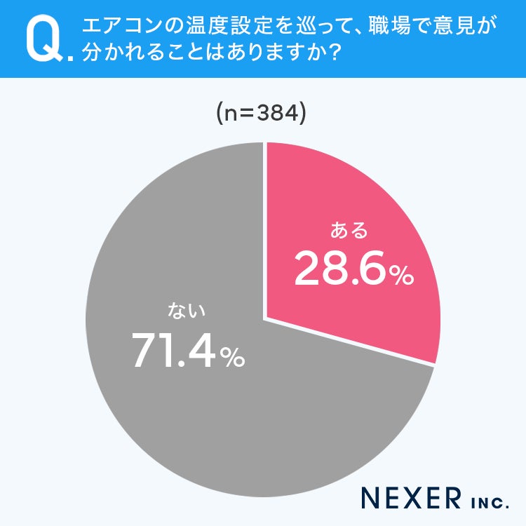 【オフィスのエアコンは揉めがち!?】28.6%が、エアコンの温度設定を巡って職場で意見が分かれたことが「ある」